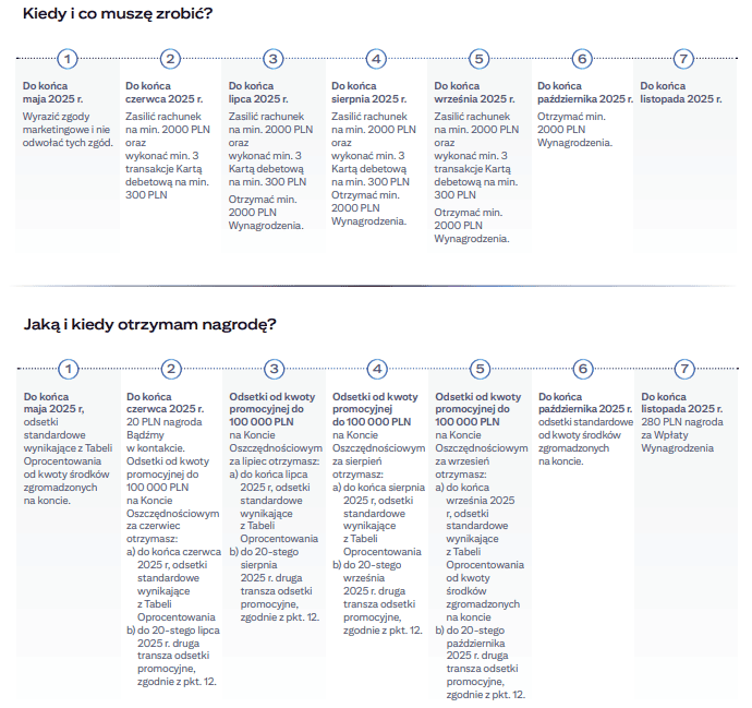 Do 11.06.2025 r. otwórz konto osobiste na dedykowanej stronie promocji wraz z kartą debetową. Zaakceptuj ciasteczka na stronie, wyraź zgody marketingowe i nie wycofuj ich aż do otrzymania nagrody.