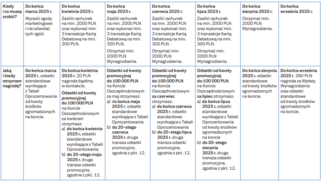 Do 15.04.2025 r. otwórz konto osobiste na dedykowanej stronie promocji wraz z kartą debetową. Zaakceptuj ciasteczka na stronie, wyraź zgody marketingowe i nie wycofuj ich aż do otrzymania nagrody.