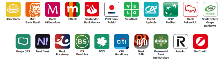 Alior Bank S.A., Bank Millennium S.A., Bank Ochrony Środowiska S.A., Bank Handlowy w Warszawie S.A., Bank Spółdzielczy Rzemiosła w Krakowie, ING Bank Śląski S.A., Krakowski Bank Spółdzielczy, mBank S.A., PKO Bank Polski S.A., BNP Paribas Bank Polska S.A., Bank Polska Kasa Opieki S.A., Credit Agricole Bank Polska S.A., Santander Bank Polska S.A., Velo Bank S.A, SGB – Bank S.A. oraz Banki Spółdzielcze zrzeszone w Spółdzielczej Grupie Bankowej, wskazane na stronie internetowej www.sgb.pl, Bank BPS S.A. oraz banki spółdzielcze zrzeszone z Bankiem Polskiej Spółdzielczości S.A. (które są uczestnikiem Systemu BLIK) Nest Bank S.A., Bank Pocztowy S.A., Bank Spółdzielczy w Brodnicy, oraz banki, które staną się Uczestnikami Systemu BLIK w trakcie trwania Loterii.